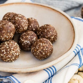 Take 1 teaspoon of the date/walnut mixture and roll into balls.