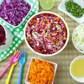 Combine the carrots, beets and cabbage (including whatever accompaniments, if applicable) in a large bowl and toss to combine.*