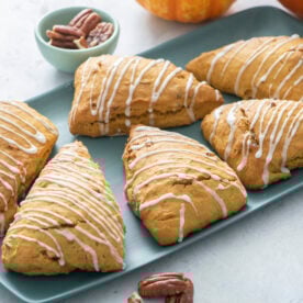 In a separate bowl, whisk together the egg and pumpkin. Add the pumpkin mixture and the pecans to the flour mixture and mix until combined.