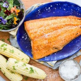 Note: if you want extra golden, crispy salmon, brush with oil and then season, or season and then spray with oil. Either way works.