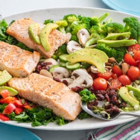 When you’re pregnant or even just trying to focus on your body performing at its optimal health, this Superfood Salad is a great way to give your body a boost and fulfill a bunch of cravings.