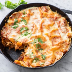This Vegetarian Skillet Lasagna is a simplified version of classic lasagna and is one of my family's favorites. It's packed with veggies and cooks all in one skillet! A win-win!